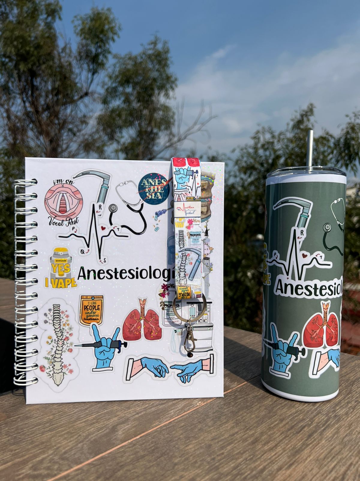 -Libreta de 18cm x 22cm, 100 hojas raya, espiral metálico, pasta dura con diseño en laminado pixel (brillante tipo holograma tanto en portada y contraportada), el el interior contiene 2 hojas con pestañas tipo sobre, calendario 2026, un apartado de stickers de anestesia.